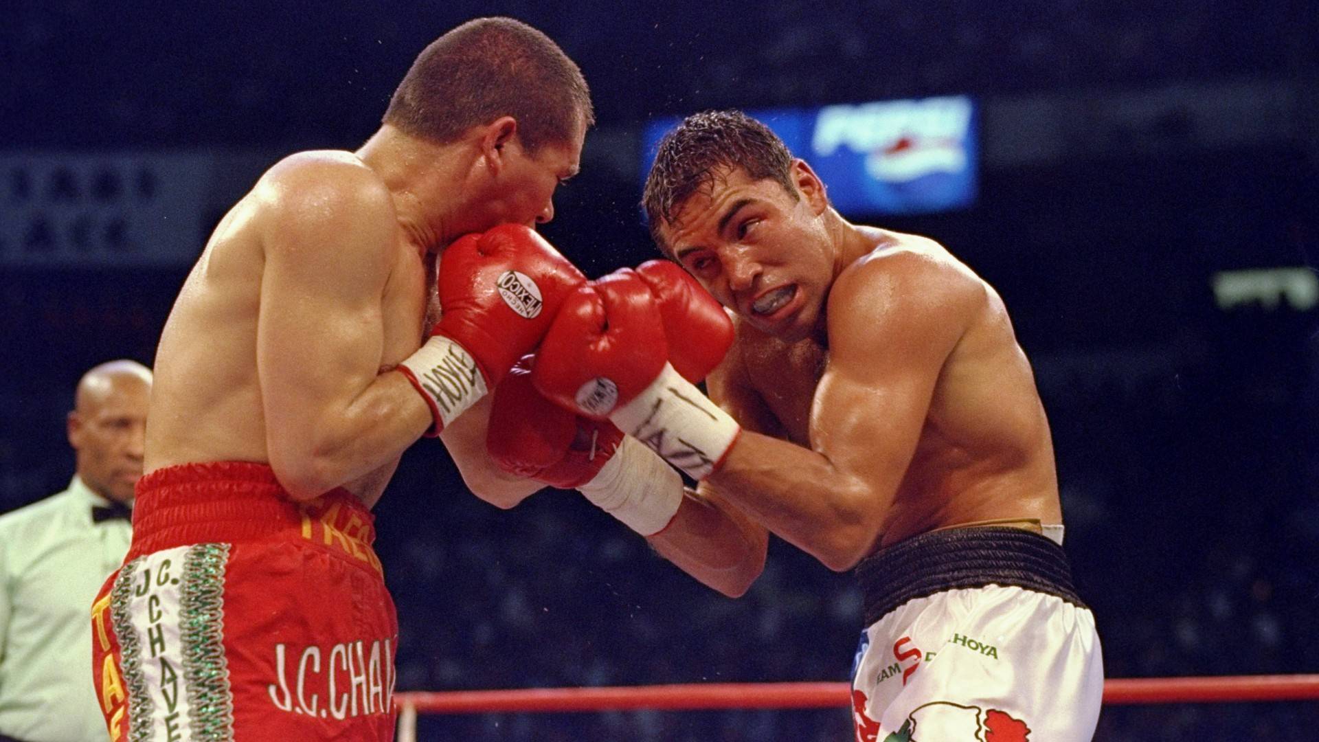 Oscar De La Hoya and his idol growing up, Julio Cesar Chavez, went toe-to-toe in a rematch for the WBC and lineal titles. Chavez was seeking revenge having refused to give De La Hoya credit after a large gash had halted their first showdown in 1996.