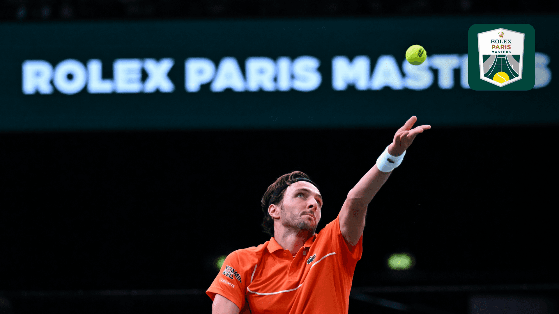 Assista ao match point da partida da primeira rodada entre Tallon Griekspoor e Luciano Darderi no Rolex Paris Masters.