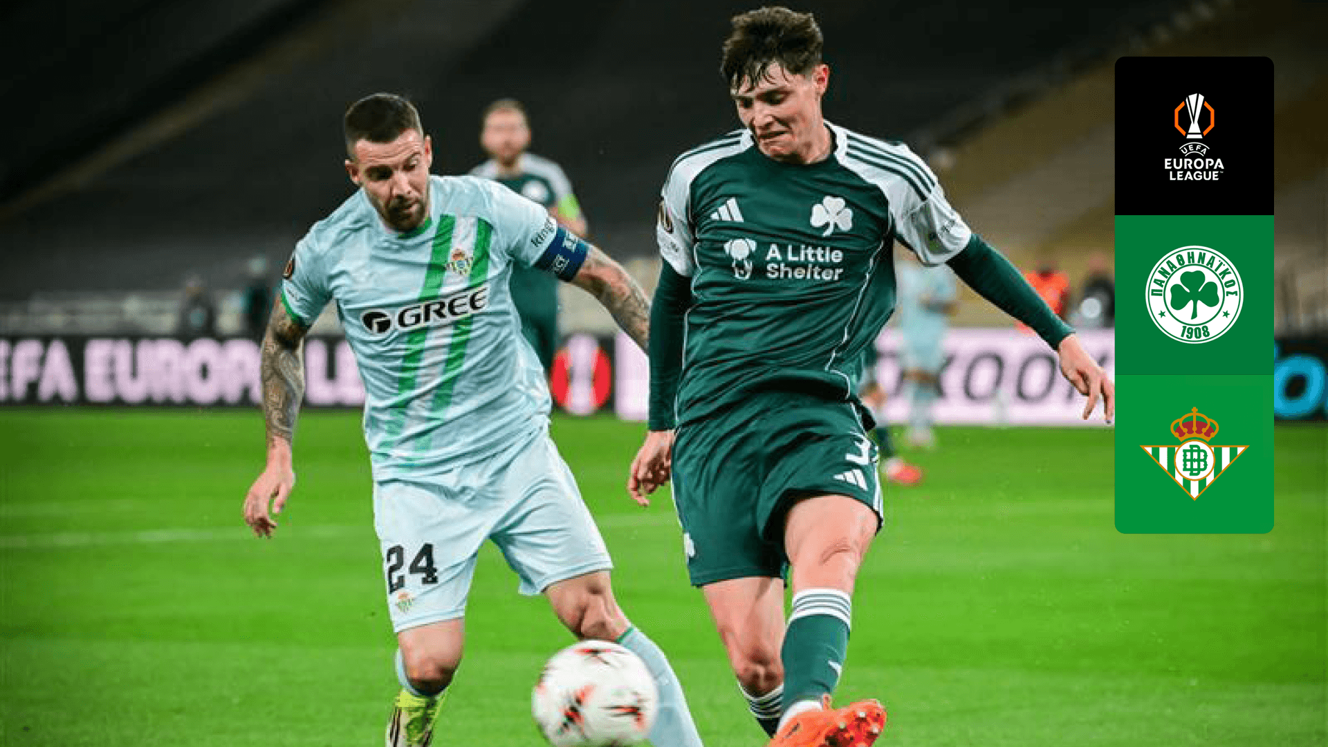 Vê o jogo da 1.º mão dos oitavos de final da UEFA Europa League entre o Panathinaikos e o Real Betis.
