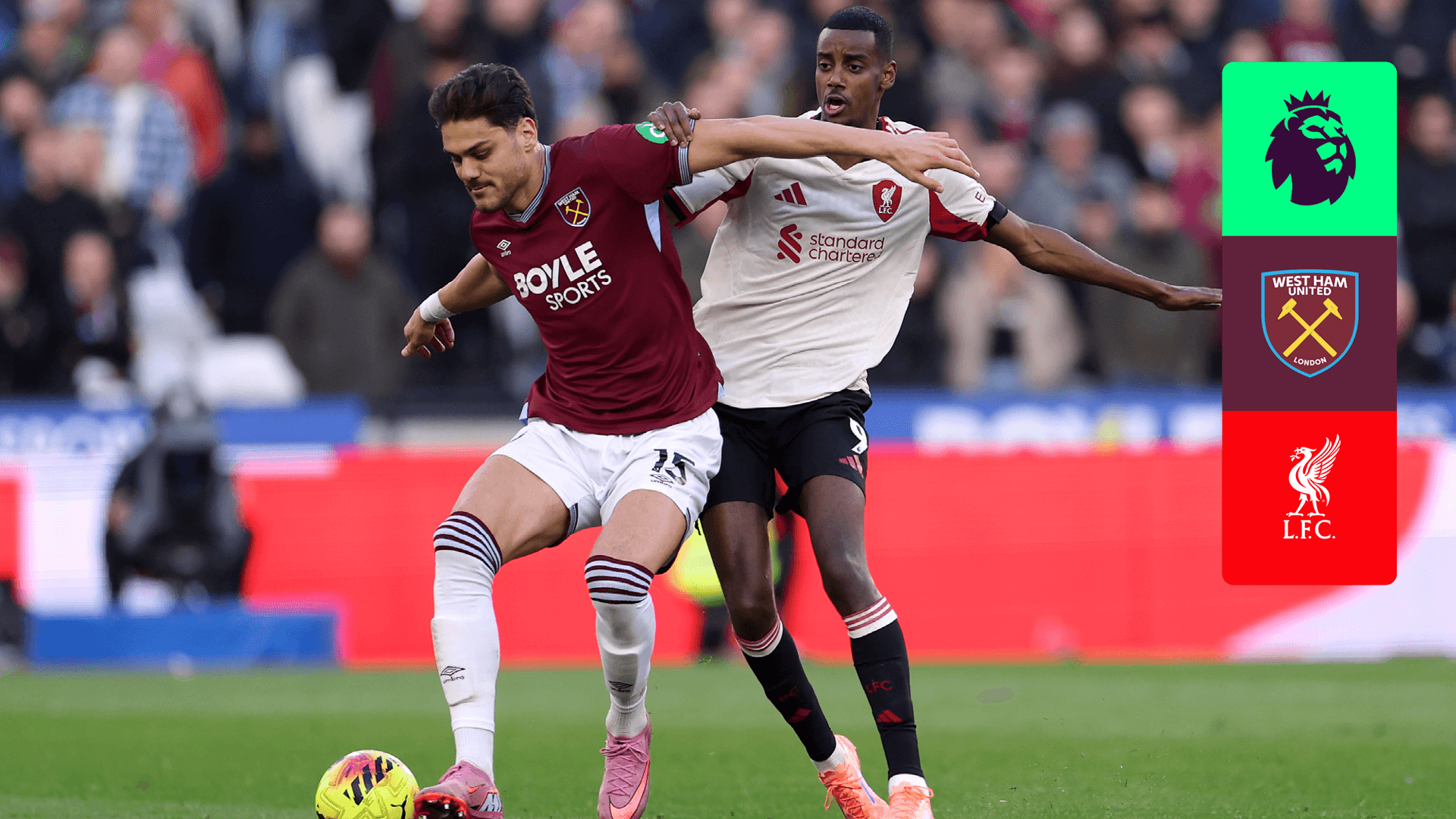 Vê o jogo da 13.ª jornada da Premier League entre o West Ham e o Liverpool.