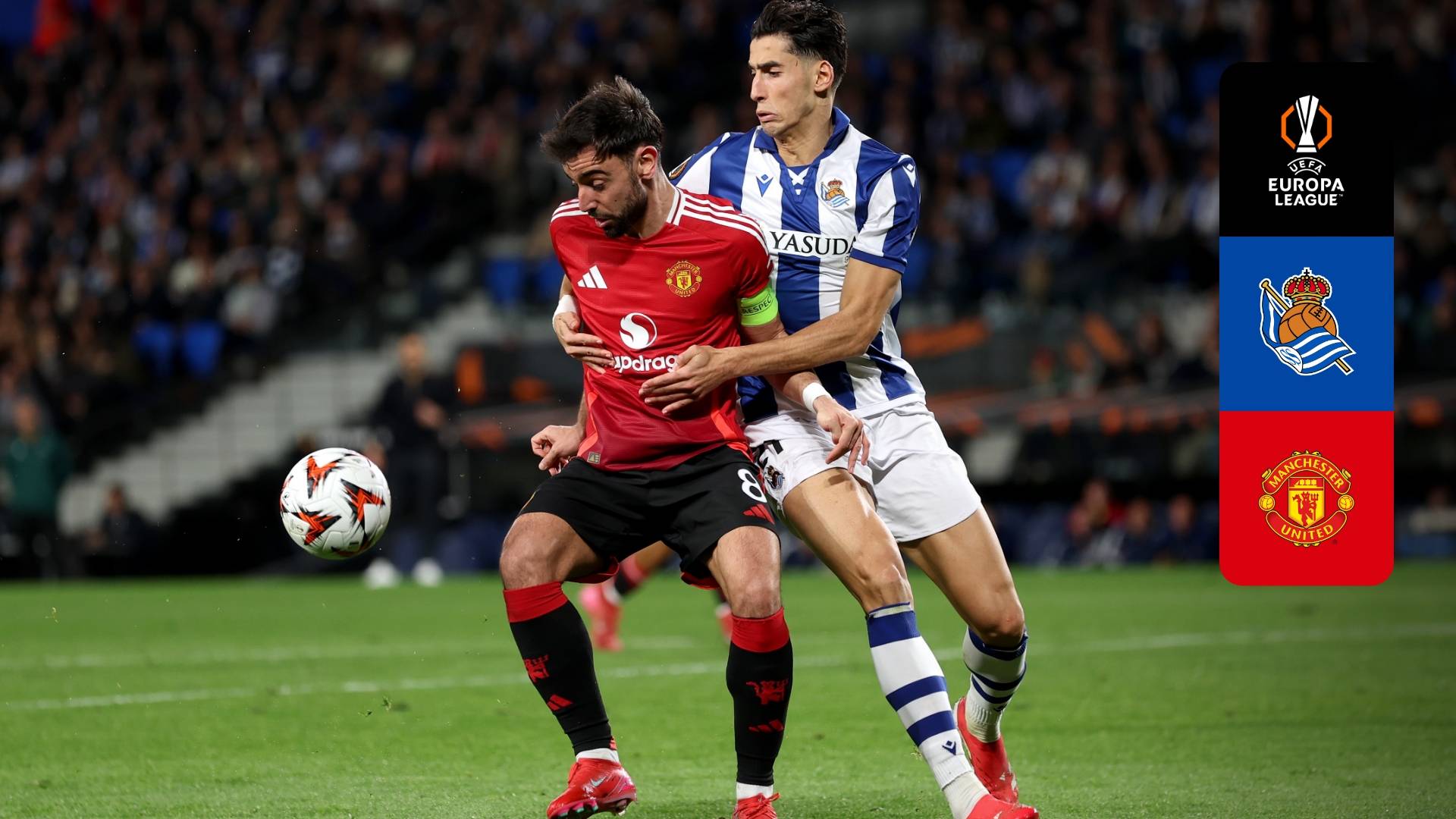 Vê o jogo da 1.ª mão dos oitavos de final da UEFA Europa League entre a Real Sociedad e o Manchester United.