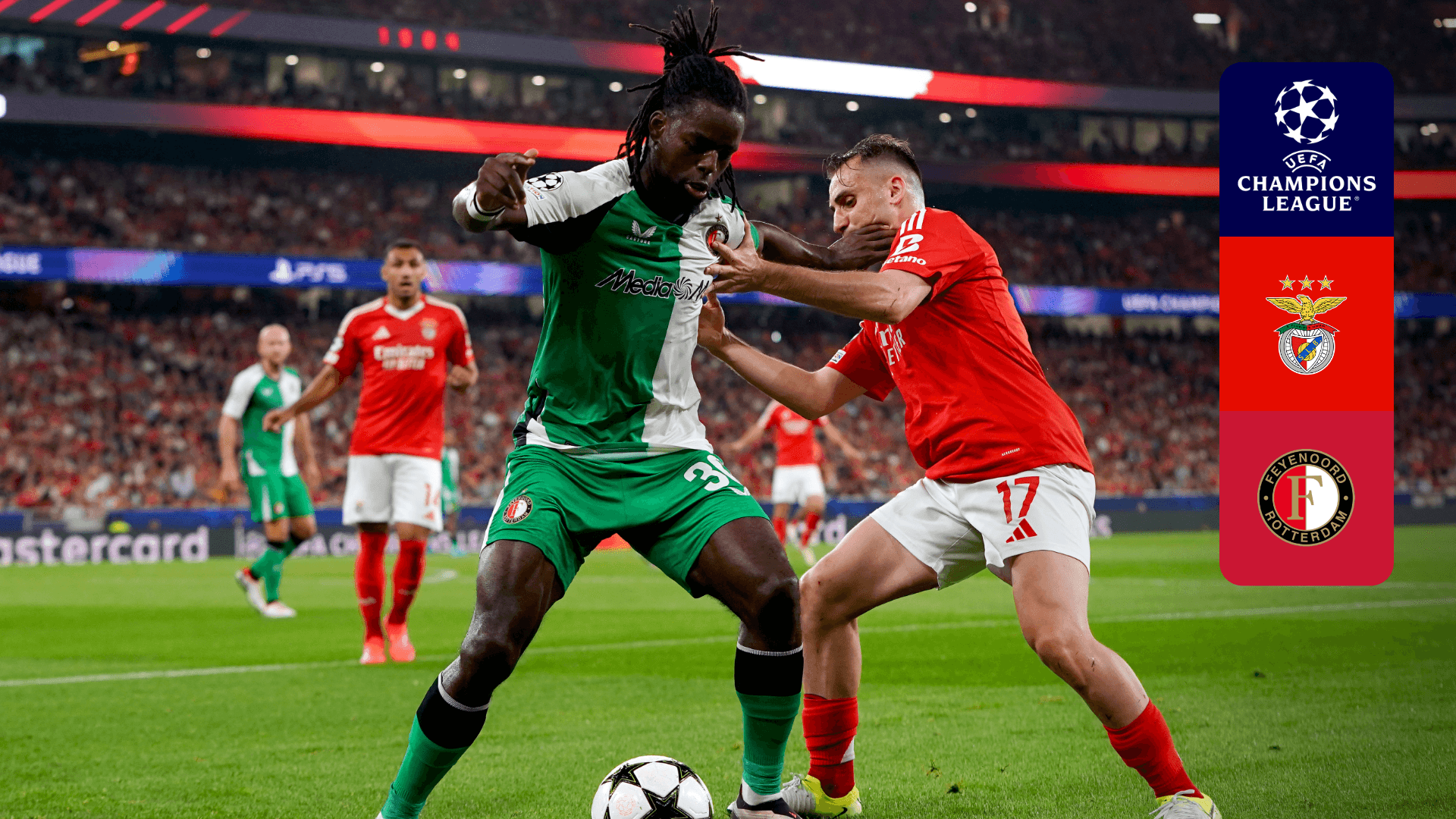 Vê o jogo da 3.ª jornada da fase de liga da UEFA Champions League entre o SL Benfica e o Feyenoord.