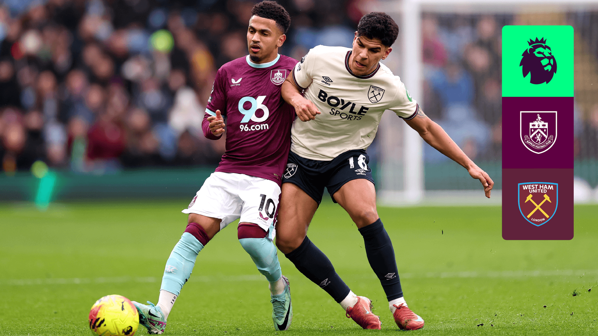 Vê o jogo da 25.ª jornada da Premier League entre o Burnley e o West Ham.