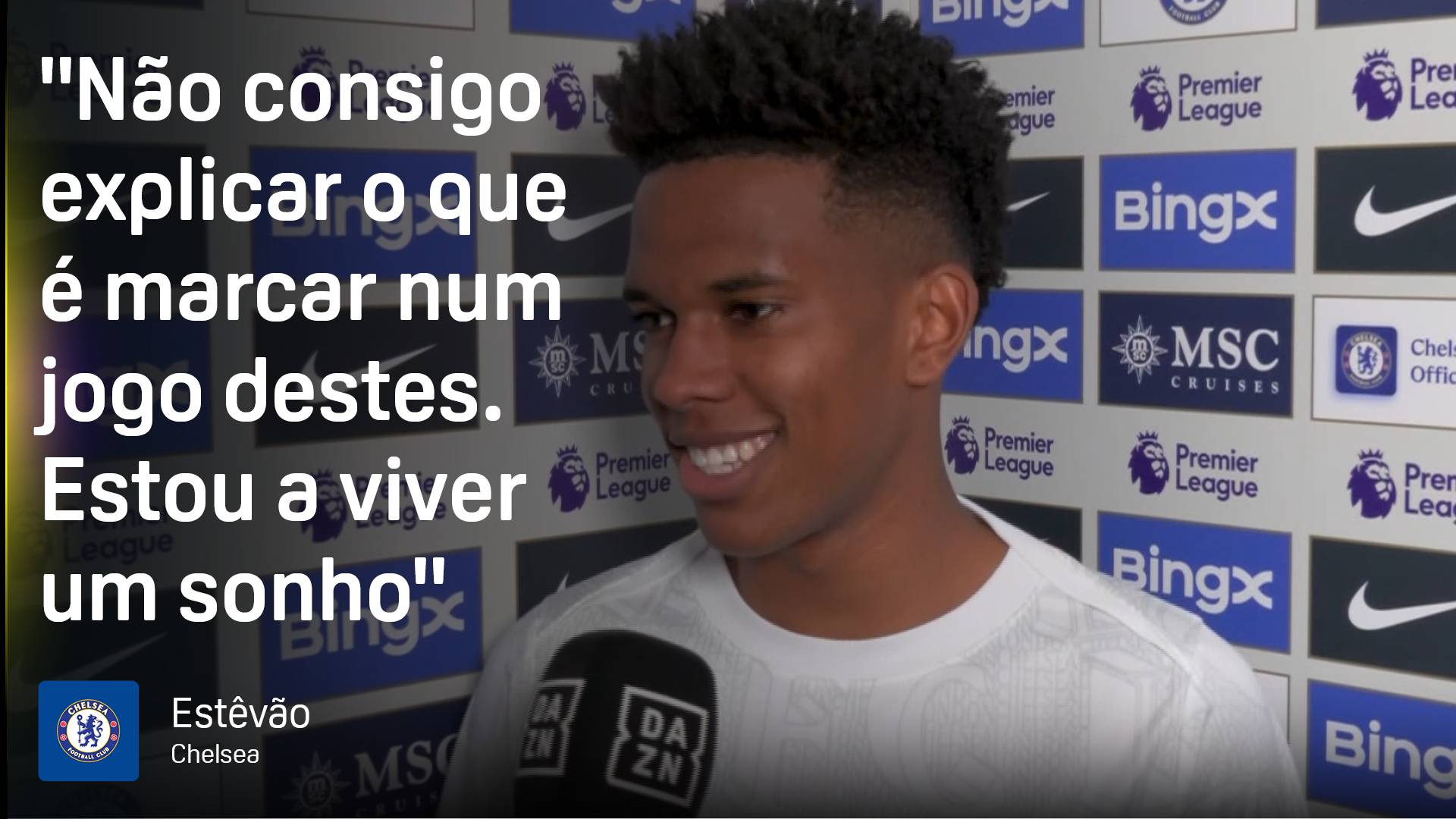 As palavras de Estêvão após a vitória do Chelsea (2-1) frente ao Liverpool, onde o jovem brasileiro se estreou a marcar com o seu primeiro golo com a camisola dos Blues.