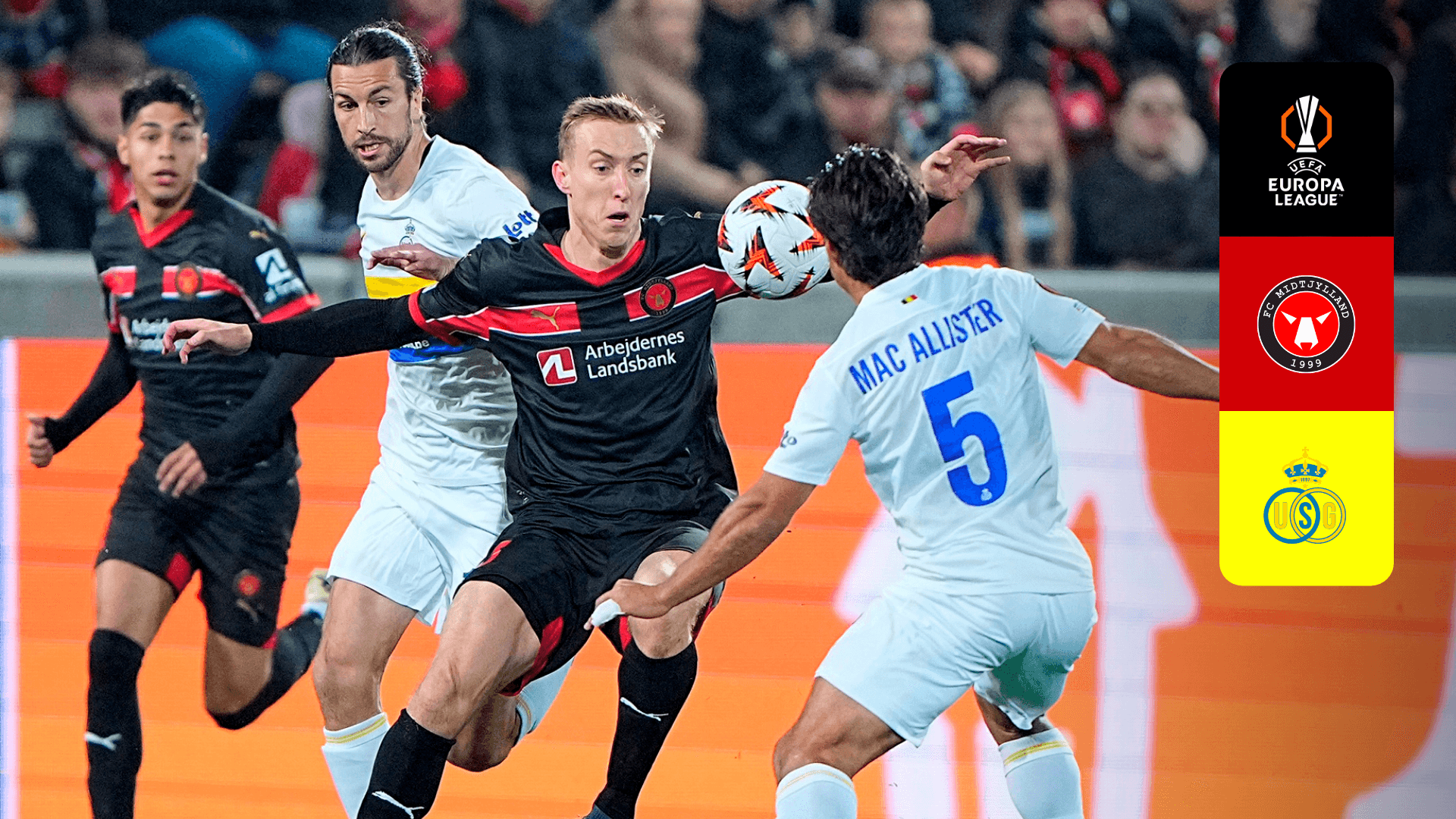 Vê o jogo da 3.ª jornada da fase de liga da UEFA Europa League entre o Midtjylland e o Union SG.